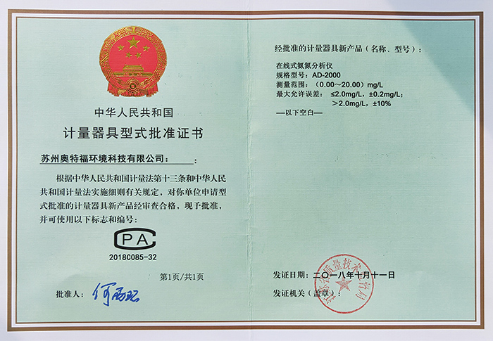 TM-6S濁度計正式獲得由昆山市市場監督管理局頒發的《中華人民共和國制造計量器具許可證》。